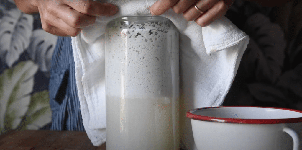 - Cubre el tarro con una tapa floja o un paño sujetado con goma.